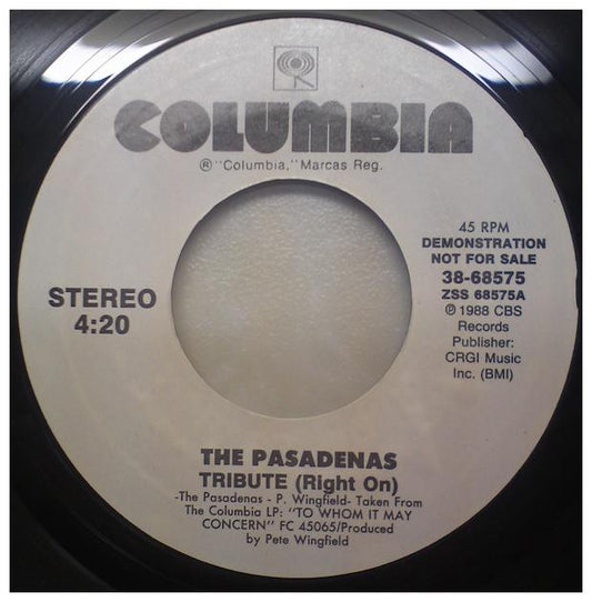 PASADENAS - TRIBUTE (RIGHT ON) | 7" SINGLE VINILO USADO