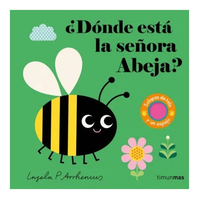 Un libro sorpresa para los bebés que empiezan a explorar y a descubrir el mundo. Cada título de esta fantástica colección tiene cuatro animalitos escondidos tras de unas coloridas solapas de fieltro, además de un espejo sorpresa: ¡una combinación perfecta para pequeños lectores! A los bebés les encantará este libro en el que buscarán a los diferentes insectos escondidos detrás de cada una de las cinco solapas de fieltro, ideal para jugar al cucú. En ¿Dónde está la señora Abeja?, los pequeños lectores deben encontrar el escarabajo, la libélula, la araña y, finalmente, la abeja. Además, cuando levanten la última solapa… ¡se verán en el espejo! Un libro que los minilectores querrán leer una y otra vez, lo cual es perfecto porque ¡las solapas nunca se rompen! El formato en cartón también resistirá al más entusiasta de los bebés y las solapas de tela acompañarán su desarrollo sensorial. A los niños y a las niñas también les encantarán las coloridas ilustraciones de la prestigiosa artista sueca Ingela P Arrhenius.