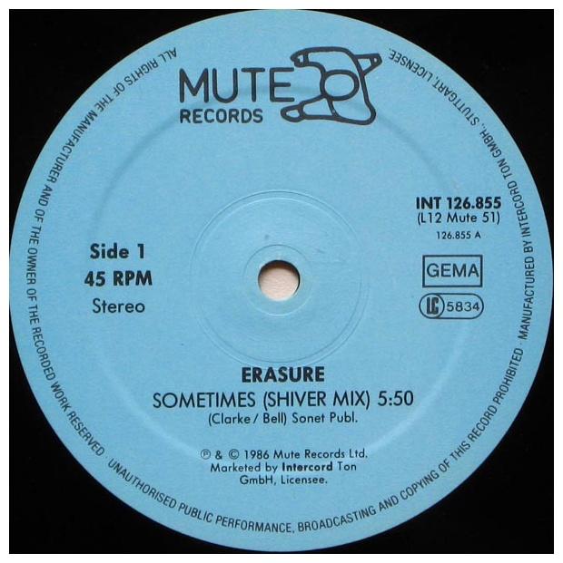 ERASURE - SOMETIMES(SHIVER MIX) - EDICION ORIGINAL DE GERMANY DE 1985 - VINILO USADO EN EXCELENTES CONDICIONES (VG++)