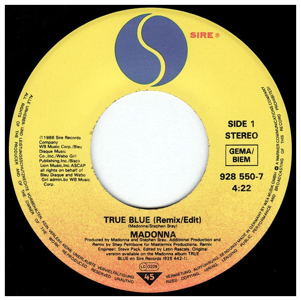 MADONNA - TRUE BLUE/HOLIDAY - EDICIÓN ORIGINAL DE GERMANY DE 1986 - VINILO USADO EN EXCELENTES CONDICIONES (VG++)
