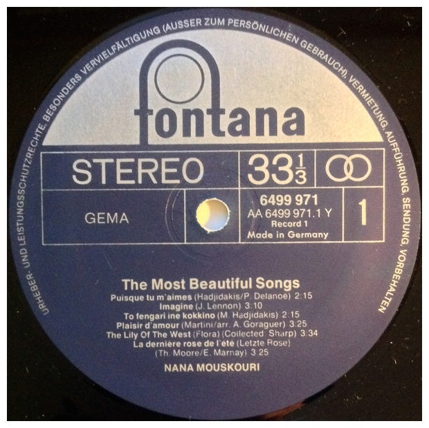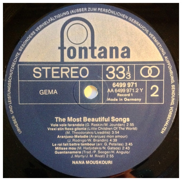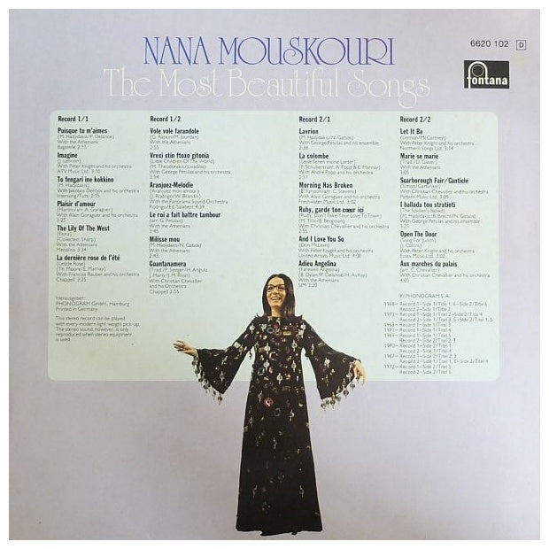 NANA MOUSKUORI - THE MOST BEAUTIFUL SONGS (2LP) - EDICIÓN ORIGINAL DE GERMANY DE 1974 - VINILO USADO EN EXCELENTES CONDICIONES (VG++)