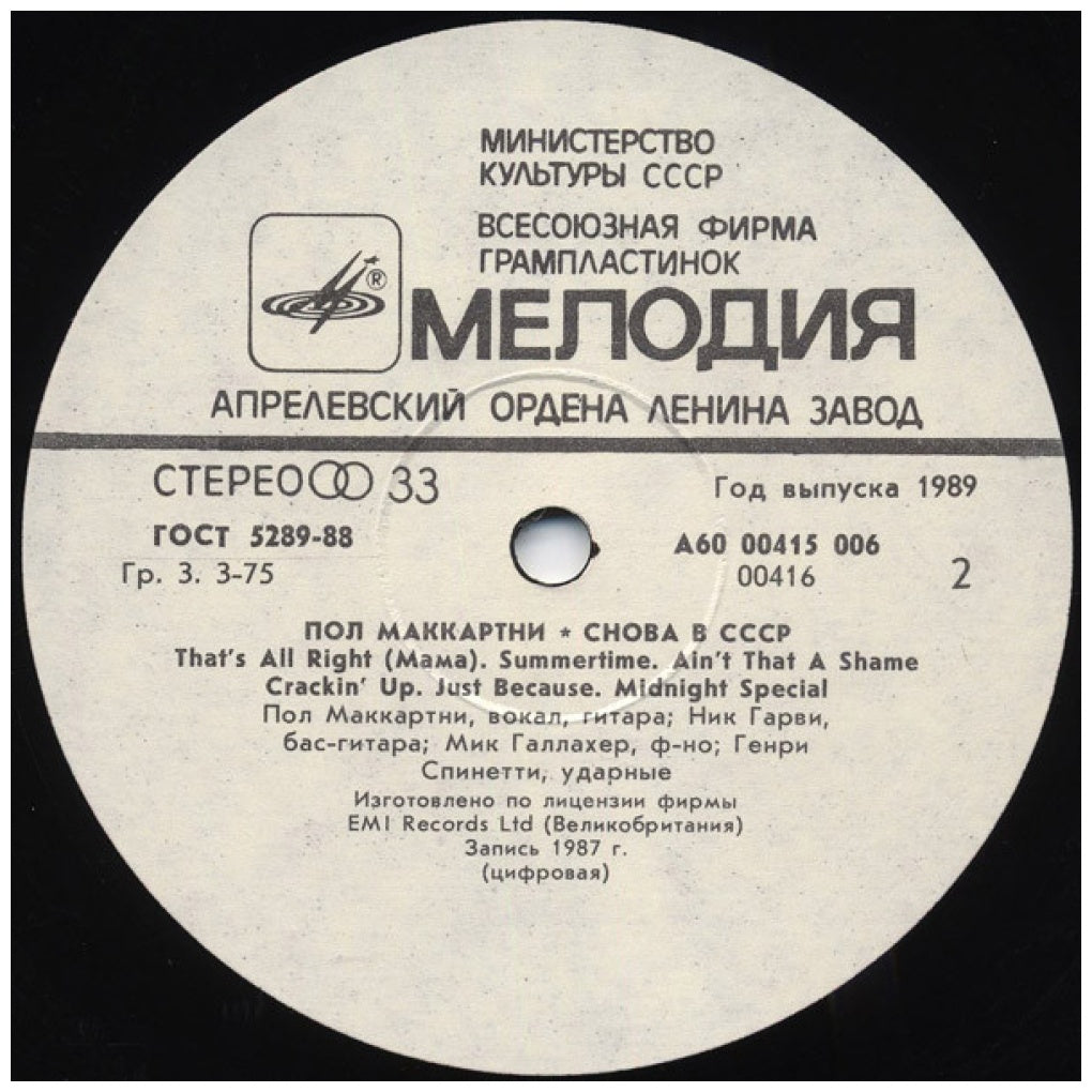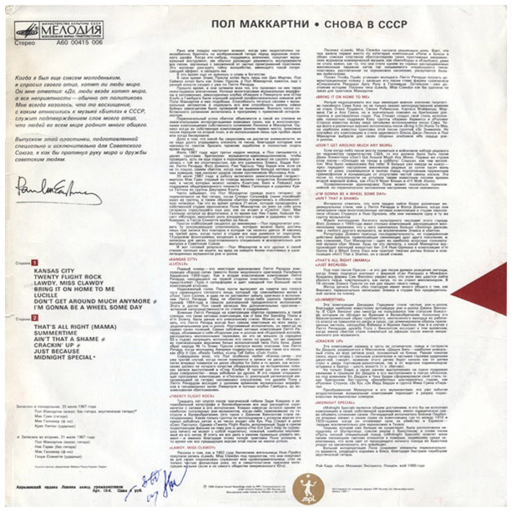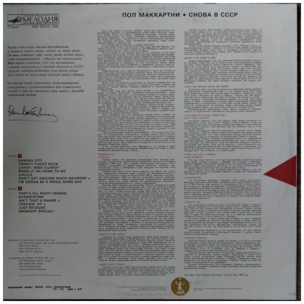 PAUL McCARTNEY - CHOBA B CCCP - EDICIÓN ORIGINAL DE RUSSIAN DE 1989 - VINILO USADO EN EXCELENTES CONDICIONES (VG++)