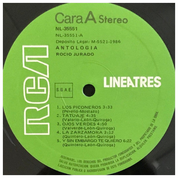 ROCIO JURADO - ANTOLOGIA - EDICIÓN ORIGINAL DE SPAIN DE 1986 - VINILO USADO EN EXCELENTES CONDICIONES (VG++)